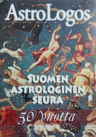 SISÄLLYS 1. Pääkirjoitus 2. Mars Vaa'ssa - yksin vai yhdessä? 7. 11. huone - yllättävä voimavara naisen kartalla 11. Charles Dickens - Kuu ja Neptunus orpoja raukkoja ruhjovassa maailmassa 18. Testi: Aurinko vai Kuu nousussa? 20. Testi: Johtava, kiinteä vai muutuva toimintamuoto? 24. Onnea vuoden 2014 astrologille, Astrikselle! 25. Empire ja Aurora Karamzinin lumo 29. Skorpioni -aika ja hänen hirmuisuutensa 32. Aurinko - Kuu ja Venus - Mars .sidokset avioeron ennustajina 36. Lisäys (Tuokiokuva, Astro Logos nr. 89) |